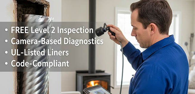Every liner installation or repair begins with a FREE Level 2 chimney inspection, including internal camera testing to assess the full condition of your flue system.